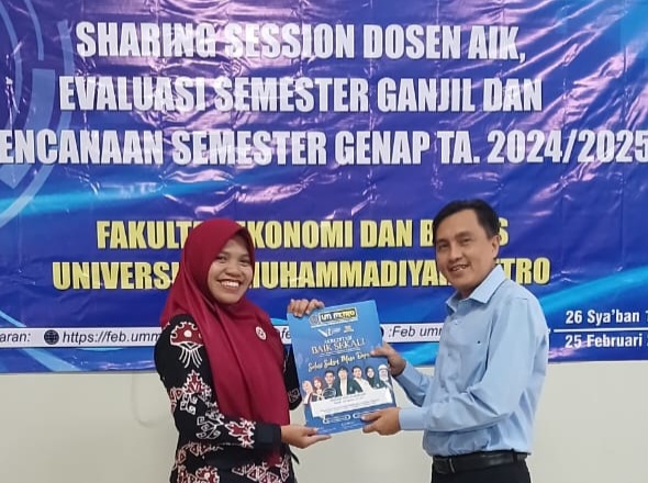 Metro, 26 Februari 2025 – Program Studi D3 Akuntansi Universitas Muhammadiyah Metro kembali menorehkan prestasi membanggakan. Pada kegiatan Audit Internal Kinerja Dosen Bidang Pendidikan dan Pengajaran semester Ganjil Tahun Akademik 2024/2025, Prodi D3 Akuntansi berhasil meraih kategori kinerja terbaik ke-2.